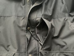 チンとは顎の先端部分を指す英語で、チンガードはファスナーを一番上まで閉めた時にジップの金具が直接肌に当たらないようにするパーツを指します。